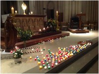 Elle ne veut pas que je l'accompagne, elle s'avance toute confiante jusqu'à l'autel pour déposer son intention et sa petite lumière.