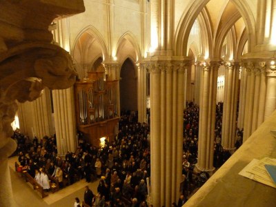 Une église, comme toute maison de famille, n’est jamais achevée : des aménagements sont nécessaires, des besoins nouveaux apparaissent, des techniques nouvelles sont à utiliser. J’ai dit comme les nouveaux vitraux en avaient amélioré la lumière. A l’occasion du centenaire, les orgues ont été entièrement rénovées et l’éclairage électrique transformé. Chaque génération ainsi, y inscrit son attachement et sa foi.